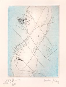 ARAGON (Louis). Les Chambres, poème du temps qui ne passe pas. Paris, Les Éditeurs Français Réunis, [1969], in-12, en feuilles, couverture rempliée, chemise, étui de l'éditeur, 108 p. Édition originale. Un des 80 exemplaires numérotés sur vélin de Rives, signé par l'auteur et comportant en frontispice une eau-forte originale en couleurs justifiée et signée de MAN RAY.