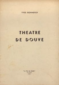 BONNEFOY (Yves). Théâtre de Douve. Le Caire, «La Part du Sable», 1949, in-8, broché, couverture rempliée, 15 p. Édition originale tirée uniquement à 100 exemplaires dont 75 exemplaires H.C. tous numérotés. Édité par Georges Henein. Très rare.