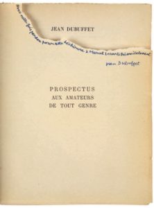 DUBUFFET (Jean). Prospectus aux amateurs de tout genre. Paris, N.R.F., collection Métamorphoses, …