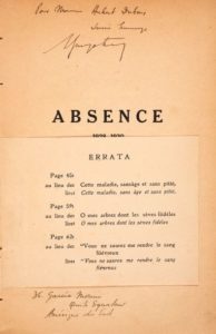 GANGOTENA (Alfredo). Absence. Quito, Chez l'auteur, 1932, in-8, broché, 76 p. Édition originale …