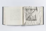 KAFKA Franz (1883-1924). KAFKA Franz (1883-1924). The Metamorphosis (Paris, Didier Mutel, 1996). 3 volumes in- 4, reliés box gris, ponçage de réserve sur une composition typographique, formes en relief biseautées sur le premier plat (François Brindeau, 2001). Livre conçu et illustré par Didier MUTEL, tiré à 60 exemplaires sur vélin d'Arches, celui-ci n° 1. Signé par D. Mutel et numéroté 1 au justificatif. Illustré de 24 gravures originales sur cuivre par Didier Mutel, l'ouvrage, traduit en anglais par Wille et Edwin Muir, est une réalisation originale, par son concept, sa typographie et sa mise en pages. La police de caractères a été créée spécialement pour Metamorphosis par Didier Mutel, à partir de lettres fragmentées, comme une métaphore du récit de Kafka sur Gregor Samsa transformé en insecte géant. Dans le tome 1, des marques verticales remplacent des mots du roman. Dans les volumes 1 et 2, on peut voir plusieurs images abstraites de Samsa, mais dans le volume 3, seules des marques abstraites sont représentées. Les mots du volume 2 sont imprimés avec des marques verticales combinées à des lettres en Métamorphosis. Selon D. Mutel, « c'est l'histoire de deux mondes. Le monde de Samsa, qui ne peut pas rencontrer sa famille ou le monde extérieur [car] il n'y a pas de communication. Quand on peut lire les gravures, on ne peut pas lire le texte et vice versa ».
