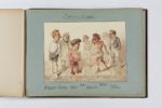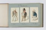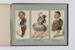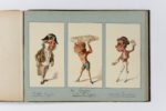Romain Thomas dit LHÉRITIER (1809-1885) acteur. Romain Thomas dit LHÉRITIER (1809-1885) acteur. ALBUM de 23 aquarelles originales, dont 6 signées « Lh », [1860-1873] ; montées sur 12 feuillets de carton bleu oblong in-fol. dans un album en reliure d'époque demi-basane brune (rel. usagée). Bel ensemble de caricatures des acteurs du Palais-Royal. Dans Le Roi Candaule (de Meilhac et Halévy, créé au Palais-Royal en 1873) : Romain Lhéritier, Jean-Marie-Michel GEOFFROY, et René LUGUET. Dans Le Plus Heureux des trois (de Labiche et Gondinet, Palais-Royal 1870), sur une même feuille : Jules BRASSEUR, GEOFFROY, LHÉRITIER et GIL-PÉRÈS. Dans L'Homme masqué (des frères Cogniard et Choler, Palais-Royal 1867) : Hyacinthe, Lhéritier, Désiré, Paul, Lassouche, Kalkaire, Gobin. Dans La Sensitive (de Labiche, Palais-Royal 1860) : Amand, Arnal, Hyacinthe, Gil-Pérès, Brasseur et René Luguet. Autres portraits de LASSOUCHE, BRASSEUR, PELLERIN, GIL-PÉRÈS, PRISTON, FITZELIER, HYACINTHE, LHÉRITIER (dans La Cagnotte de Labiche, 1864), ACHARD, LEVASSOR, RAVEL, Félicia THIERRET, DÉSIRÉ ; Paul GRASSOT dans trois de ses rôles (Le Célèbre Vergeot, Le Terrible Savoyard et Dansorès Españolas ; une page est également consacrée aux « Esclaves » du Palais-Royal : le garçon d'accessoires, le 1er et le 2e régisseurs.