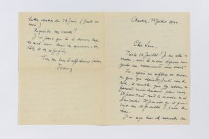 MOULIN Jean (1889-1943) préfet, héros de la Résistance. MOULIN Jean (1889-1943) préfet, héros de la Résistance. L.A.S. « Jean », Chartres 14 juillet 1940, à sa sœur Laure MOULIN, à Montpellier ; 3 pages et demie in-8, enveloppe. Belle et rare lettre de Jean Moulin, moins d'un mois après son arrestation par les Allemands et sa tentative de suicide en juin 1940.