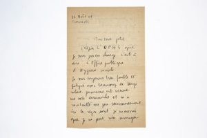 PREVEL Jacques (1915-1951). PREVEL Jacques (1915-1951). L.A.S. « Jacques », 11 août 1948, à « Mon tout petit » ; 2 pages in-8. Il est malade et pris en charge par « l'Office publique d'Hygiène sociale. Je suis toujours bien faible et fatigué avec beaucoup de température. […] ici les repas sont si mauvais que je ne peux rien manger. J'ai beaucoup maigri ». Il demande de venir le voir, et de lui envoyer des fruits, ainsi que « le Rimbaud qu'Artaud m'avait donné et la vie fantastique de Mary Baker Eddy ».