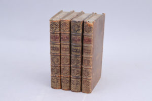 (Coiffes et coins frottés ; manque de cuir en queue de la charnière du tome III). Collation : XLIX pages, (11 pages) pour le catalogue des livres de Mortier, (4) et 369 pages : (4 ff), 315 pages ; (3 ff) et 390 pages ; (3 ff) et 308 pages, (31 ff). 4 frontispices, et 7 planches hors-texte, toutes dans le tome II. Le libraire hollandais David Mortier "avoit acheté le droit d'imprimer les Oeuvres de feu Monsieur Boileau" quand il apprit qu'une édition venait d'être publiée à Genève en 1716. Il fit imprimer à la hâte ces 4 volumes in-12 en 1717, avant de donner une édition in-folio en 1718, illustrée par Picart, qui passe pour la plus belle des éditions XVIIIème de Boileau. Cette édition de 1717 semble très rare : elle manque à Tchemerzine et au Catalogue des ouvrages de Boileau conservés au département des imprimés de la BN, publié en 1903.