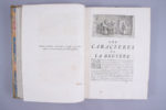 LA BRUYERE, Jean de Les Caractères de Théophraste, et de La Bruyère. Avec des notes de M. Coste. Nouvelle édition. A Paris, chez Hochereau et Panckoucke, 1765. Grand in-4°, plein veau moucheté. Grands fers de l'Université de Paris. (Coiffes et...
