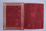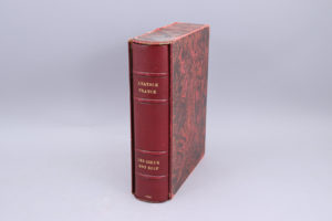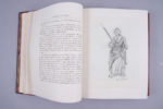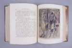 filets droits, délimitant dans les angles un carré orné d'un bonnet phrygien poussé à l'or sur fond de maroquin rouge coquelicot ; gardes de moire. Toutes tranches dorées. Couvertures conservées. Chemise de 1/2 maroquin bordeaux, intérieur de veau beige ; étui avec coupes de maroquin bordeaux (Etui endommagé. Rousseurs sur la deuxième garde volante provoquée par le report d'un ex-libris placée au verso de la première garde volante) Reliure parfaitement établie signée Canape. Georges Canape obtint une médaille d’argent à l’Exposition Universelle de 1900 (Flety, pages 37-38). Tirage à 125 exemplaires seulement, tous sur papier vélin, celui-ci, n°84 au nom de M.H. Prost. Exemplaire exceptionnel, avec une suite des 32 eaux-fortes et dessins, une suite des lettres ornées, 6 planches refusées en double état ; et 18 dessins et croquis originaux, certains à pleine page et en couleurs. Monod 4886 n'indique aucun exemplaire avec suite, et aucun exemplaire avec suite n'est indiqué sur la justification du tirage. Provenance Maurice J. Lachard et Catherine Ruchoux