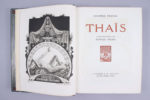 FRANCE, Anatole (A.F. THIBAULT, dit) Thaïs. Illustrations de Raphael Freida. Paris, A. Plicque et Cie, 1924 In-4°, plein maroquin vert bouteille à gros grains. Plats jansénistes, dos mosaïqué. Large décor intérieur composé de 5 filets droits...