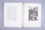 624 exemplaires, celui-ci un des 15 exemplaires nominatifs, comportant une suite, sur papier à la main du Moulin Richard de Bas, marqués de A à O (celui-ci Lettre B, imprimé pour Madame Jean Meurville) premier grand papier. Envoi de l'auteur à "Monsieur Lachard" daté 1968. 17 remarquables illustrations dessinées et gravées au canif sur bois de fil par Lucien Jacques. (Manque à Monod) Ex-libris Maurice J. Lachard.