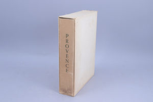 GIONO, Jean Provence. Manosque. Arcadie. Basses-Alpes. Orné par Lucien Jaxques. (Manosque. Aux dépens d'un bibliophile). 1957. In-4°, en feuilles ; couvertures rempliées illustrées ; chemise et étui. La couverture, les 23 illustrations et les...