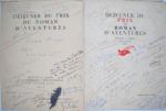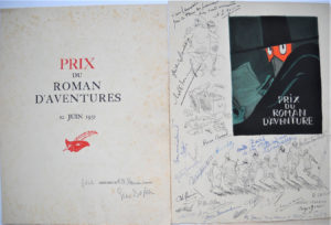 [Littérature - Romans policiers] PRIX DU ROMAN D’AVENTURES, 1931-1967 Rare réunion de 22 menus illustrés et dédicacés, tirages limités sur vélin d’Arches in-folio (rousseurs), donnés à l’occasion de la remise du Prix du roman...