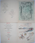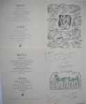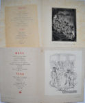 d’aventure. Exemplaires nominatifs, illustrés par des estampes de Gus Bofa, Dignimont, Oberthur, etc. Dont menus des années 1931 à 1937 comportant de nombreuses signatures et dédicaces d’auteurs et artistes : Pierre Benoit, Jean Bommart, Gus Bofa, Frédéric Boutet, Francis Carco, Léon Deffoux, Simone d’Erigny, Roger Giron, Pierre Guittet-Voquelin, Gaston Leroux fils, Pierre Mac-Orlan, Pierre Nord, Jean-Bernard Passerieu, Albert Pigasse, Jean Vertex, Emile Zavie… JOINT : Menu « Au mouton de Panurge » illustré par Dubout.