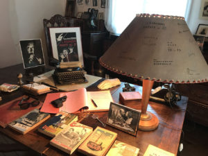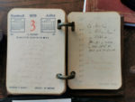 ACCESSOIRES DE TRAVAIL DE STANISLAS-ANDRÉ STEEMAN Ensemble de souvenirs et de matériels de bureau ayant appartenu à S.A. Steeman, calendrier annoté, boîte à cigares, boîte à stylos, paire de lunettes, montre Kelton... et téléphone à cadran...