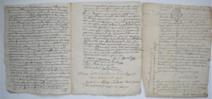[Corse] Conseil supérieur de la Corse, 1777 2 actes manuscrits écrits en Corse, datés de mars et mai 1777, établis devant le juge civil d’Ajaccio. Dont un acte portant les signatures de Pier Andrea Colonna d’Istria (1711-1794), maréchal de...