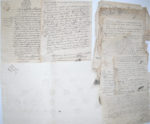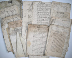 divers, dont : Contrat de mariage entre : Claude Collot conseiller du roi receveur général des aydes et du taillon de la généralité de Poitiers et Claude de la Chambre (1641), Pierre Collot commissaire ordinaire des guerres et Marie de Vaucorbeil veuve de Jean Boulanger lecteur ordinaire du roi (1644), Alexandre Julliart sieur de Frosville l’un des 200 gendarmes de la garde ordinaire du roi et Marie Anne de Pérignon-Collot (1689) ; achat de l’office de receveur alternatif des tailles en l’élection de Saint Etienne du Furan en Forez et de l’office triennal du taillon par Me Pierre Pérignon-Collot conseiller du roi receveur ancien alternatif et triennal du taillon en l’élection de Forest à Montbrison, époux de Louise Bellanger (1651) ; arbre généalogique ; extraits baptistaires et mortuaires ; etc. Provenance : par descendance, Eugène Vignat (1815-1895), maire d’Orléans de 1856 à 1869 et député du Loiret (1869-1870).
