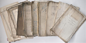 de « Analyse généalogique des Archives de la Maison d'Hangouart. 900 ans d'histoire d'une vieille famille de Lille », publié en 1930. Mémoires, notes généalogiques, et preuves de titres de noblesse de la famille d’Hangouart, dont : • Mémoire, 16e siècle, 17 pp. in-4, commençant par : « En un anchien livre aux contratz reposant en la petite trésorie de la ville de Lille commenchant l’an 1305 au premier feuillet est faicte mention de Jehan Hangouart le fils… » ; • Mémoire sur la requête de Guillaume de Hangouart, sieur de Piètre, anobli le 14 octobre 1555, pour preuves des titres et privilèges de la noblesse contre les officiers et collecteurs des tailles, 2nde moitié du 16e siècle, 50 pp. in-4 ; • Mémoire débutant par « Appert par plusieurs raisons la famille de Hangouart de la ville de Lille estre procédée de anchienneté de une noble maison de barons de Allemagne portant surnom de Ankevbard et armes de ung aigle d’argent membre d’or en camp de sable, nobles et libres barons (…) de laquelle maison Hangcouvard Ankebvart chevalier portant lesdites armes… », 16e siècle, 85 pp. in-4 ; • Mémoire, 2nde moitié du 16e siècle, 19 pp. in-4, commençant par « Extraict de certains quaiers écriptz de la main de feu maistre Rogier Hangouart en son vivant premier conseiller pensionnaire de la ville de Lille, et à son trespas conseiller de l’empereur Charles V notre sire et maistre ordinaire en sa chambre des comptes à Lille… » ; • Extraict de aulcuns gros volumes délaissés par le trespas de feu Jacques Artus sieur de Valgourdin en son vivant majeur et depuis prevost de la ville de Lille tout escryt de la propre main dudyt Artus contenant grand nombre de mémoires et extraicts par luy recueillis et copiés…, 2nde moitié du 16e siècle, 24 pp. in-4 ; • Extraits des mémoires de Jacques Artus, sieur de Valgourdin, fin du 16e siècle, 71 pp. in-4 ; • 3 collations faites par les auditeurs du souverain bailliage de Lille de certains livres et quayers de papiers couverts de parchemin délaissés par le trespas de feu Rogier Hangouart en son vivant conseiller pensionnaire de la ville de Lille et conseiller de l’Empereur et maistre en sa chambre des comptes…, 12 septembre 1567, 36, 28 et 47 pp. in-4 ; • 2 mémoires, « Le registre et besoingnes pour damoiselle Jeanne Doresmieulx veusve de feu Paris de Hangouart mère et tutrice légitime des enffans qu’elle at eu dut Paris contre messieurs les officiers de la gouvernance de Lille… », 1er juillet 1597, 42 pp. et 97 pp. in-4 ; • Inventaire des titres et déclaration des titres et enseignements de Wallerand Hangouart, sieur de Laurye, bourgeois et échevin de Lille, anobli en 1600, fin du 16e siècle, 35 pp. in-4 ; « Advertissement pour Wallerand de Hangouart escuyer sieur de la Laurie imputrant de requête par escript », mémoire généalogique, fin du 16e siècle, 100 pp. in-4 ; • Notes, réflexions et arbre généalogique des deux lignes de la famille de Hangouart, 17e siècle, 30 et 16 pp. in-4 ; • « Preuves de très ancienne noblesse de la famille d’Hangouwart », 18e siècle, 27 pp. in-4 ; • « Preuves authentiques de la haute noblesse de la maison d’Hangouwart », 18e siècle, 63 pp. in-4 ; • Fondation pour financer l’école et les élèves boursiers au sein du chapitre de la collégiale Saint Pierre de Lille, par Wallerand Hangouart, aumônier de l’Empereur Charles Quint, prévôt de Saint Amé de Douay, chantre et chanoine de l’église collégiale de Saint Pierre de Lille, dont « Etat et déclaration des bourses au profit du séminaire de Saint Pierre à Lille » pour les années 1671, 1675, 1730 et 1790 ; « Mémoire des biens et revenus existant » au 20 février 1720 Etc. JOINT : intéressant mémoire manuscrit, fin du 16e siècle, argumentaire juridique et historique sur le fait de pouvoir être reconnu noble dans la châtellenie de Lille, 42 pp. in-4. PLUS DE DESCRIPTIONS DANS LE CATALOGUE DE LA VENTE SUR ROUILLAC.COM SOUS L'ONGLET /CONSULTER LES DÉTAILS DE LA VENTE/