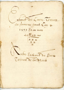 [Tarn] LIVRE-TERRIER DE PUGNÈRES, XVIIe SIÈCLE « Extraict du livre terrier de Punières fait l’an 1593 et au mois de may – Autre extraict du livre terrier de Verdfeuil », copie manuscrite datée 13 août 1617, 12 pp. in-4 ; la seigneurie de...