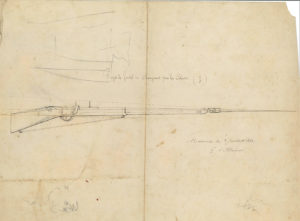 pages in-8, contenant les notes manuscrites de lecture, de réflexion et de coupures de journaux relevés par le général Léopold baron d’Azémar vers 1860-1880. Les sujets traités se réfèrent essentiellement à l’organisation et aux événements militaires et plus particulièrement à l’évolution de la cavalerie, mais aussi à la politique, à la généalogie de la famille d’Azémar, recettes de droguerie, etc ; - Paul Gaschon de Molènes (1821-1862), officier militaire et homme de lettres, Le Soldat en 1709, Maubeuge, Imp. Decaussenne, 14 pp. in-4, avec envoi manuscrit signé : « à Monsieur le colonel baron d’Azémar hommage de respectueux dévouement » ; • Gaston baron d’Azémar (1837-1921), général de division - Projet de fusil se chargeant par la culasse, manuscrit à la plume avec corrections et ratures, 35 pp. in-4 ; copie-brouillon d’un mémoire rédigé par Gaston d’Azémar vers 1863, lieutenant au 64e régiment d’infanterie, sur la conception d’un nouveau type de fusil à aiguille, accompagné de 3 croquis à la plume et copie manuscrite d’une lettre datée du 18 octobre 1866 du secrétaire d’Etat de la guerre lui signifiant ne pas donner suite à ce projet de construction d’une nouvelle arme, jugé défectueux par la commission d’artillerie ; - Illusions d’automne, opérette en un acte, paroles d’Albert Fayet, Musique de Gaston d’Azémar, Paris, 11 décembre 1867, carnet manuscrit de 69 pp. in-8 ; - Contribution ou initiation à l’étude théorique de la musique, par le général Gaston d’Azémar, 1910-1911, 3 registres manuscrits in-8, env. 130 pp. chacun ; brouillon manuscrit avec corrections et ratures, et 2 copies manuscrites de l’étude rédigée par Gaston d’Azémar qui dans son introduction écrit : « Ce n’est pas un traité d’harmonie que nous présentons à nos lecteurs, (…) C’est encore moins une histoire de la musique (…) qui peut se résumer en ces quelques mots : rechercher les raisons, aussi positives que possible, de la tonalité moderne ».