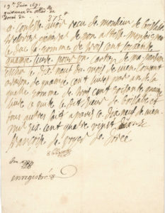 Victor Le Tonnelier de Breteuil, ministre de la Guerre, à Charles Théodore de Bavière, comte palatin du Rhin, au sujet d’une promotion au sein du régiment Royal d’Infanterie allemande de Bavière, 1 page in-fol., avec adresse ; • P.A.S., Paris, 19 juin 1691, Françoise de Voyer de Paulmy de Dorée, dite Mademoiselle de Dorée, dame de la cour, maîtresse éphémère en 1681 du roi Louis XIV, puis fille d’honneur de la duchesse de Bourbon, 1 page in-8 ; • Réunion de + de 20 feuillets in-folio manuscrits ; extraits de comptes divers en provenance de maisons princières, dont celle du duc du Maine, Louis Auguste de Bourbon, prince légitimé, avec dépenses au château et au parc de Sceaux, 1720 ; celle du prince de Condé, 1707-1708, dépenses en bougies et flambeaux fournis pendant les états de Bourgogne en juin et juillet 1706 ; etc ; • Demande de placement au béguinage de Lille par l’ancienne supérieure de l’hôpital général de Calais, 1 page in-fol.