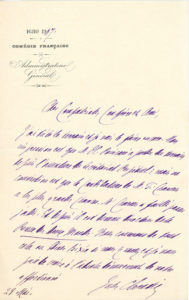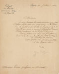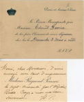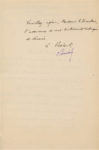 ; L.S., 11 juillet 1881, Jules Ferry (1832-1893), président du Conseil ; Lot de 8 cartes de visite, début du XXe s., dont certaines avec annotations manuscrites dont Paul Déroulède, Alexandre Ribot, prince Auguste d’Arenberg, Charles de Freycinet, etc ; Carton d’invitation du prince Bonaparte ; L.S., 31 octobre 1908, Raymond Poincaré (1860-1934), président de l’union des associations philotechniques ; L.A.S., 28 mai [1907], Jules Clarétie(1840-1913), 1 page in-8, au sujet de l’élection à l’Académie française : « Cher compatriote, confrère et ami, j’ai tâté le terrain et je vais le faire encore. Mon impression est que M. H[enri] Poincaré a perdu du terrain depuis l’ouverture du secrétariat perpétuel ; mais ma conviction est que la candidature de M. F[rancis] Charmes a les plus grandes chances. M. Charmes a failli passer jadis. Et depuis il est devenu directeur de la Revue des Deux Mondes. Nous causerons de tout cela au dîner Bixio si vous y venez… »