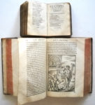 alphabétique sur les vies de Plutarque ». In-fol. de (8)-734-(26) feuillets (qqs feuillets détachés, déchirures et petits manques, mouillures). Première édition de la traduction française de Jacques Amyot. Intéressant exemplaire contenant en marges des commentaires manuscrits à la plume terminant par ses mots : « Leu et releu le temps des vaccations en l’an 1560 ».  Mentions manuscrites de plusieurs ex-libris dont celui de la bibliothèque de Jules Thiballier de Villebourgeon, lieutenant au bailliage d’Orléans dans les années 1580 ; • Clément Marot, recueil rel. veau in-16 (en l’état) comprenant « Les œuvres de Clément Marot de Cahors, vallet de chambre du Roy », Paris, Benoist Prevost, 1551, 372 ff. avec les tables des œuvres (12) ff., suivi de « L’enfer de Marot » (16 ff.) et de « Cinquante deux pseaumes de David », Paris, Pierre Gaultier, 1556, 78 pages (incomplet et en l’état) ; • Cartari de Rhège, « Les images des dieux des anciens, contenans les idoles, coutumes »… Lyon, Estienne Michel, 1581, rel. petit in-4 veau (défauts, épidermures), 14-637 pp. suivi des tables (en l’état).