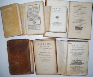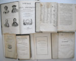 tomes, Paris, chez les libraires associés, 1768, 2 vol. rel. in-12 veau d’époque (en l’état, épidermures), lx-228 et xii-210 pp. ; • Jean-Marie-Louis Coupé, « Histoire universelle les théâtres de toutes les nations… », 2 vol., tome I et IV, 1779 ; • Nicolas Edme Restif de la Bretonne, « Les contemporaines, ou avantures des plus jolies femmes de l’âge présent », tome 1 et 2, Leipzig, Büschel, 1780, 2 vol.br. in-8 216 et 222 pp. ; • « Traité sur la constitution des troupes légères et sur leur emploi à la guerre ». Paris, Nyon, 1782, rel. (en l’état) in-8, 360 pp. avec 27 pl. dépliantes ; • « Eloge de feu M. Bernard de Fontenelle, l’un des Quarante de l’Académie française », 1783, 37 pp. in-8 ; • Pierre Corneille, « Pompée, tragédie » et « Héraclius, empereur d’Orient tragédie », Paris, au bureau de la petite bibliothèque des Théâtres, 1785, br. in-12 95-99 pp. ; • Comte de Mirabeau, « Histoire secrète de la cour de Berlin ou correspondance d’un voyageur françois, depuis Le Mois De Juillet 1786 Jusqu'au 19 Janvier 1787 », ouvrage posthume. 2 vol., 1789, rel. basane in-8 (en l’état, plats détachés), 318 et 376 pp. ; • Recueil rel. veau d’époque in-8 (défauts, épidermures) contenant : Vie du roi Louis XVI, 88 pp. ; Essai historique sur la vie de Marie-Antoinette, reine de France et de Navarre, 2nde partie, Versailles, La Montensier, 1789, 108 pp. ; Lettres à M. Necker, ministre d’état et directeur général des finances, 1788, 27 pp. ; Confession générale de M. Necker et de l’assemblée nationale, 1790, 86 pp. ; Necker jugé par le tribunal de la lanterne, 30 pp. ; Livre rouge, Paris, Baudouin, 1790, 39-8 pp. ; Coup d’œil sévère mais juste sur le livre intitulé le livre rouge, 1790, 83 pp. ; • « Les forfaits du 9 octobre, ou, Examen approfondi du rapport de la procédure de la Châtelet sur les faits des 5 et 6 octobre 1789 », fait à l'Assemblée nationale… 2 vol., 1790, br. in-8 ; • Recueil rel. in-8 contenant : John Nicholls, Observations on the situation of his royal highness the Prince of Wales. London, Miller, 1795, 21 pp. ; A letter to John, Lord Eldon… Rumour of an intended royal divorce. London, Ridgway and sons, 1816, 32 pp. ; Bonniot, De la légalité des droits d’enregistrement, d’après les lois fiscales. Paris, Delaunay, 1832, 146 pp. ; Bonniot, Aperçus financiers sur la légalité des droits d’enregistrement. Toulouse, 1832, 22 pp. ; Edinburgh musical festival, 1815 et 1819, 21 et 13 pp. ; Peter Pindar, The bath pump room. London, Johnston, 1818, 39 pp. ; Protestation de M. de Montbel ex ministre du roi de France… Paris, dentu, 1831, 31 pp. ; Ex-libris « MM. Franck, Louis et Armand Courtois », banquiers de Toulouse à la fin du 19e siècle ; • Gaspar Monge, « Traité élémentaire de statique à l’usage des écoles de la Marine ». Paris, Baudouin, an VII, rel. in-8, 200 pp. et 5 pl. dépliantes ; • Masson, Encyclopédie des enfans ou abrégé de toutes les sciences. Paris, Bossange, Masson et Besson, 1807, rel. in-8 605 pp. ; • « Le porte-feuille des enfans : mélange intéressant d'animaux, fruits, fleurs, habillemens, plans, cartes, et autres objets, dessinés & gravés sous la direction de M. Cochin… » rel. in-4 ; • Sophie d’Arbouville, « Le manuscrit de ma grand’tante ». Paris, Brière, 1841, rel. demi-chagrin in-4, 254 pp. avec envoi signé de l’autrice à S.A.R. la duchesse d’Orléans ; • Alcide d’Orbigny, « Voyage pittoresque dans les deux Amériques ». Paris, Furne, 1841, rel. in-4 568 pp. ; • Zadoc Kahn, « Oraison funèbre de Madame la Baronne James de Rothschild douairière prononcée au temple israélite de la rue de la Victoire le 9 septembre 1886 », rel. plein chagrin in-8, 32 pp.