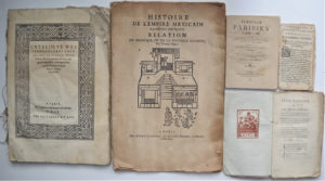 France, Henry deuxième, à Paris, Michel de Vascosan, 1555. Dérelié- in-folio, incomplet, en l’état (manques, déchirures, mouillures, trous de vers). 5 parties incomplètes d'un recueil constitué de six publications héraldiques édités par le juriste Jean Le Féron, nombreuses figures héraldiques dans le texte, le tout gravé sur bois ; • Thomas Gages, Histoire de l'Empire mexicain représentée par figures : Relation du Mexique ou de la Nouvelle Espagne, 1663, à Paris, chez André Cramoisy, rüe de la Vieille Bouclerie, Au Sacrifice d'Abraham, 48 pp. in-fol. (incomplet, manque p. 49 à 58), en l’état ; • Erasme, Desideri Erasmi Roterodami Colloquia familiaria, édition de 1676, incomplet (seulement 22 pages in-12), en l’état (trous de vers, déreliées) ; • Friedrich Gottlieb Klopsock, Der Messias, Halle, Carl Hermann Hemmerde, 1760-1773, complet (4 tomes) en 2 volumes in-8 rel. veau d’époque (en l’état) ; (11) ff., 184 pp. ; (8) ff.,143 pp. ; (8) ff., 216 pp.;(1) f., 190 pp. (mouillures). Exemplaire portant la signature de l’abbé Félicité de La Mennais (1782-1854) et du comte Arthur de Circourt (1806-1886) ; • Jean-Jacques Rousseau, Confessions de J. J. Rousseau. Noms qui ne sont indiqués que par des lettres initiales dans les éditions imprimées. Morceaux inédits ou différences qui se trouvent entre le manuscrit offert a la Convention par Thérèse Levasseur, et les éditions de Rousseau, Se vend a Paris : chez Vincent Lebreton. Pichard. Desenne, [1790], broch. in-8, 93 pp., ex-libris Lessac ; • Almanach parisien, 1867, 78 pp. in-12.