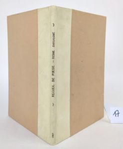 Recueil des pièces de poésie présentées à la Reine de Sardaigne à son passage à Lyon, par les pensionnaires du Collège de la Ste trinité de la Compagnie de Jésus. Lyon, Declaustre, 1737. Un volume. 18 par 25 cm. 32 pages. Demi-vélin blanc moderne. Reliure en parfait état. Couverture restaurée en marge de manière ancienne et professionnelle. Bon état intérieur. Très rare fascicule