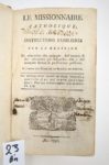 [BIGEX, (F. M.)] : Le missionnaire catholique ou instructions familières sur la religion. A l'isage des fidelles du Diocèse de Genève. S.l., s.n. Mai 1796. Un volume. 10,5 par 18 cm. 344-2 pages. Pleine basane d'époque, bon état. Défense de l'Eglise par questions et réponses