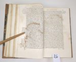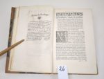PARADIN (Guillaume) : Cronique de Savoye, par Maistre Guillaume Paradin chanoyne de Beaujeu. Lyon, Jean de Tournes et Guillaume Gazeau, 1552. Un volume. 15,5 par 24,5 cm. (34)-(2 bl.)-396 pages. Demi-veau 19ème à coins, dos 4 nerfs, en mauvais état : mors fendus, manque sur le papier du 2nd plat Très bel état intérieur, hormis de très rares rousseurs, et traces de mouillures claires sur 4 feuillets en fin d'ouvrage. Avec la marque Nescit Labi Virtu de Jean de Tournes en fin d'ouvrage. Première édition de cette chronique, ornée d'un tableau dépliant figurant l'Arbre de Consanguinité de la Maison de Savoye. Ce livre, une des plus belles productions des presses du célèbre imprimeur Jean de Tournes, contient d'abord une histoire de la Savoie, puis une étude sur les Ducs de Savoie. Livre rare, dans un exemplaire qui attend sa nouvelle reliure
