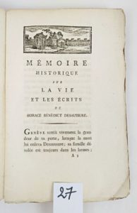 SENEBIER (Jean) : Mémoire historique sur la vie et les écrits de Horace Benedict Desaussure, …