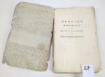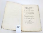 SENEBIER (Jean) : Mémoire historique sur la vie et les écrits de Horace Benedict Desaussure, pour servir d'introduction à la lecture de ses ouvrages. Genève, Paschoud, An IX. Un volume. 13,5 par 21,5 cm. 219 pages. Broché, non rogné, sous couverture muette d'attente de l'époque. Pièce de titre en papier en haut du dos. Couverture d'attente abimée, texte à grandes marges en parfait état. Edition originale de cette première biographie de l'illustre savant et alpiniste genevois, rédigée par un non moins célèbre naturaliste et météorologue genevois.