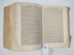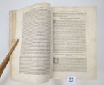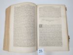 (Antoine Favre) Antonii Fabri J.C. Sebusiani, Sabaudi Senatoris et in Gebennensis Ducatus auditorio praesidis : Coniecturarum. Juris civili, libri sex priores. In quibus, difficiles plaerique juris loci, nonis cum emndationibus, cum interpretationibus explicantur. Edition tertia. Lugduni, Franciscum Fabrumn 1605. Un volume. Relié avec : Du même auteur : coniecturarum iuris civilis, pars secunda, VII, VIII, IX, X, XI, XII, Lyon, Fabrum, 1606 Du même auteur : coniecturarum iuris civilis, Lib. XIII, XIIII, XV, XVI Lyon, Fabrum, 1602 Du même auteur : coniecturarum iuris civilis, pars quarta, lib. XVII, XVIII, XIX, & XX continens, Lyon, samuelem Crispinum, 1607. Du même auteur : coniecturarum iuris civilis, XIX, & XX, Lyon, samuelem Crispinum, 1605. 16 par 24 cm. Reliure d'attente en carton. Ouvrage en état moyen, avec divers défauts dont des mouillures claires. L'ensemble des ouvrages reliés dans ce volume constitue la totalité des Coniecturarum Juris Civilis de ce grand juriste savoisien Antoine Favre.