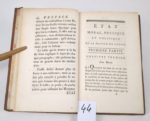 [DOPPET (François-Amédée)) : État moral, physique et politique de la maison de Savoie. On y a joint une esquisse des portraits de la Maison régnante. Paris, Buisson, 1791. Un volume. 12 par 19,5 cm. XII-210 pages. Pleine basane d'époque, dos lisse et ornés, pièce de titre noire. Coins légèrement usés, un choc au bas du dos, sinon bon état de la reliure. Rares rousseurs, 4 petits manques de papier en marge de pages sans manque (d'origine), sinon bon état intérieur. L'auteur a commencé par écrire des odes à MESMER, puis le Traité du fouet et de ses effets sur le physique de l'amour. Il s'engagera activement dans la révolution, période où il publie l'ouvrage proposé ici. Il porte la maxime suivante : Les Grands ont fait le déficit, qu'ils y remédient ! qui reste à méditer