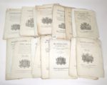 SAVOIE - Un lot de 25 documents de 1786 à 1822, dont : Manifeste de police du gouverneur de Savoye, sur la sureté publique dans le Duché (1790) Manifeste du Sénat de Savoie sur L'arrêt des bandits et malfaiteurs, 1792 Arrêt du Sénat de Savoie sur Destruction des hannetons, 1786 Manifeste caméral sur les gabelles, 1822 Edit royal sur l'usage d'un nouveau papier timbré, 1817 Lettres patentes sur le corps des carabiniers royaux, 1816 Notificazione della regia commissione superiore di liquidazione, 4 aprile 1820 (86 pages), Etc. Documents in-4, brochés, la plupart en très bon état.