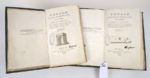 MILLIN (Aubin Louis) : Voyage en Savoie, en Piémont, à Nice et à Gènes. Paris, Wassermann, 1816. Deux volumes. 13,5 par 21,5 cm. (4)-VI-II-376 ; (4)-415 pages. Plein veau vert sombre d'époque, dos lisse orné. Plats décorés par le nom CAIFSOTTIL sur le plat supérieur, et le blason Honneur et Patrie sur le plat inférieur. Quelques épidermures sur un plat, reliure ayant été vernie anciennement. Très bon état intérieur (très rares piqûres, deux mentions d'appartenances anciennes (dont Caifsottil) sur la page de titre. Deux gravures sur les pages de titre. Unique édition de ce beau récit de voyage en Piémont et en Ligurie par Aubin Louis Millin (1759-1818), érudit et botaniste. L'intention de Millin était de décrire toute la péninsule italienne, mais que le voyage s'est finalement limité au Piémont et à la Ligurie. Le rapport sur les us et coutumes de la Vallée de Suse est particulièrement exhaustif. Gênes et Turin occupent également une part substantielle du récit.