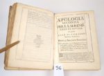 [MONOD (Pierre)] : Apologia secunda per la serenissima Casa di Savoia in riposta alle scandalose invettive intitolate Prima et seconda Savoina. Torino, heredi di gio. Dominico Tarino, 1632. Un volume. 14,5 par 20 cm. (44)-270-(10) pages. Plein vélin ivoire d'époque, en très bon état (deux coupes très légèrement grignotées). Texte en très bon état (infimes galeries de ver sur la marge des 50 derniers feuillets, vraiment sans aucune gravité). « Première édition de la traduction italienne, dont l'originale parut en français à Chambéry l'année précédente, et constituant la réponse aux Première et Seconde Savoisienne. Jésuite savoyard, Pierre Monod fut le confesseur de Christine de France, femme du Duc de Savoie ».