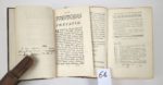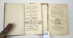 Deux impressions régionales Officia propria dioecesis genevensis. Annecii, Joan Bapt & Alexii BURDET, 1777. 10,5 par 16,5 cm. Pleine reliure d'époque, en état médiocre. Titre et dernière page salis. Sous le titre, armoiries de Mgr J. P. BIORD, qui rédigea cet office, source de nombreux remous avec le chapitre de N D de Liesse. Les dates connues de l'activité des BURDET sont 1737 à 1773 pour Jean Baptiste, et 1782 à 1825 pour son fils Alexis. Les deux imprimeurs semblent donc avoir eu une activité entre ces deux périodes. Rare. Avec [CROTTET (Nicolas)] Brevis tractatus pro sacerdotibus confessariis de honestate in statu matrimonii servanda. Camberii, antonium Dufour, 1784. 10 par 16,5 cm. Demi-basane 19ème . Bon état général. Deux rares impressions savoyardes.