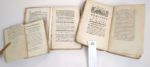 DOPPET (François Amédée) : Mémoires politiques et militaires du général Doppet, contenant des notices intéressantes & impartiales sur la révolution française, sur les sociétés populaires, sur la révolution des Allobroges & la réunion de la Savoie à la France, (). Carouge, département du Mont-Blanc, Jaq. Barth. Spineux, an V de la république (1797). Un volume. 11,5 par 18,5 cm. XII-336 pages. Cartonnage amateur. Quelques annotations marginales, quelques rousseurs sur une dizaine de feuillets (sans gravité), sinon bon état intérieur. Edition originale rare. Un des tous premiers livres imprimés à Carouge, par Spineux. François-Amédée Doppet (1753-1799), médecin, fut un militaire victorieux. Dirigeant la légion Allobroge, il prit part à la conquête de la Savoie (son pays natal), et participa aux sièges de Lyon et de Toulon. Avec [DOPPET (François Amédée)] : Mémoires de Madame de Warens et de Claude Anet, pour servir de Suite aux Confessions de J.J. Rousseau. Edition originale. Chambéry et Paris, Leroy, 1786. Un volume. 13 par 21 cm. (6)-frontispice-XVI-237 pages. Broché, non rogné, sous papier dominoté en couverture d'attente. Dos abimé, quelques rousseurs, une petite tache en coin sur le frontispice. Vraie édition originale de ce texte de défense de Madame de Warens (une contrefaçon est parue la même année, avec une pagination différente et sans nom d'éditeur). Avec [DOPPET (François Amédée)] : Vintzenried ou les mémoires du chevalier de Courtille, pour servir de suite aux Mémoires de Madame de Warens, à ceux de Claude Anet, & aux Confessions de J.J. Rousseau. Paris, marchands de nouveautés, 1789. Un volume. 10 par 14 cm. XII-139 pages. Broché, sous couverture muette d'attente. Titre poussiéreux, quelques petites rousseurs dans les derniers feuillets, sinon état correct du texte. Edition originale de cette suite aux Mémoires de Madame de Warens.