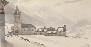 DREVET (Joanny). Sollières et le Fréjus, Haute Maurienne [1937]. Aquatinte en couleurs signée …