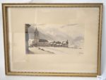 DREVET (Joanny). Sollières et le Fréjus, Haute Maurienne [1937]. Aquatinte en couleurs signée en bas droite et justifiée en bas à gauche 94/350. Dim. : 20 x 37 cm (cuvette). Cadre : 45 x 60 cm. (Beccatini 275).