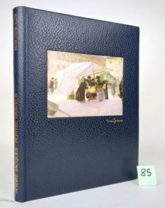 JACQUES-DAUNE (Denise). La Savoie d'André Jacques. Éditions Jean-Pierre Gyss, pour les Editions les Sillons du Temps, 1986. Un volume in-4 [24.5 x 33 cm], 20 pp.-(1) f., 82 pl., plein simili cuir bleu nuit avec une reproduction d'une aquarelle en couleurs contrecollée sur le premier plat, toutes tranches dorées. Edition originale illustrée de 82 planches couleurs et noir et blanc (reproductions de tableaux et de gravures d'André Jacques). Un des 200 exemplaires de la "Série Grand Prestige" numérotés de I à CC. Celui-ci, le n° CLX. Perret 2344.