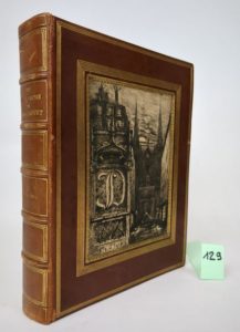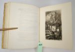 VIAL (Eugène). Les eaux-fortes et lithographies de Joannès Drevet, quatre-vingt-quatre reproductions dans le texte et hors texte. Lyon, Cumin et Masson, 1915. Un volume petit in-4°, 120 pages, plein chagrin brique, plat orné d'une eau forte enchâssée dans un cadre doré formé de dentelle et filets dorés, dentelle dorée intérieure, couv. et dos, t. dorée, étui (reliure signée Marius Magnin). Mors frottés et fendus sur quatre centimetres, frotements. EXCEPTIONNEL n°1 de l'édition de luxe, un des 15 premiers sur vélin du Marais, qui contient bien la suite des 28 eaux-fortes en double état [et 3 en triple état], tel que prévu à la justification du tirage, avec en sus des états supplémentaires de 3 des 28 eaux-fortes, et 16 eaux-fortes ajoutées [non prévues à l'ouvrage] telles listées ci-après. Envoi de J. Drevet à la justification. Au total donc 76 gravures originales [l'exemplaire Tissot n'en contenait que 64, et le superbe exemplaire De Veyle, le plus riche rencontré jusqu'à celui-ci, n'atteignait que 70 eaux-fortes]. Les 2 gravures en triple état : - n° 238 - Flèches de Saint-Nizier [avec la reliure] - n° 114 - Paysage romantique La gravure en quadruple état : - n° 220 - Solitude [2ème état - 2 épreuves] Liste des eaux-fortes ajoutées en fin d'ouvrage : - La Saône à Saint-Romain-de-Couzon. - Le Pont de l'Ile Barbe - Le Paysagiste à l'auberge. - Ancien Pont-en-Royans - Bords de l'Albarine, à Saint-Maurice-de-Rémens - Sous-bois au bord d'un étang. - Mon canot au moulin de Saint-Maurice-de-Rémens - Plates sur la Saône à Lyon - Rue de Village à Saint-Maurice-de-Rémens - L'Etang de Chemilieu (Ain). - Le Quai Fulchiron en 1886 - La rue Ferrandière et l'ancien Mont-de-Piété - Le Lac - Ex-libris de J.D. [femme au hénin] - Ex-libris de Joannès Drevet. - Combat naval, d'après Morel Fatio