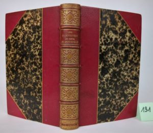 PUITSPELU (CLAIR TISSEUR DIT NIZIER DU) - Les Oisivetés du Sieur Nizier du Puitspelu Lyonnais. -Lyon, Henri Georg, 1883. Un volume in-8 [13.5 x 21.5 cm], 392 pages + (1) f., demi-maroquin rouge à coins, dos à 5 nerfs et caissons mosaïqués et dorés, tête dorée, couv. conservées. (Reliure signée Allô). Edition originale tirée à 225 exemplaires. Celui-ci, un des 175 sur hollande, dans lequel a été reliée en début de volume, une lettre manuscrite de Puispelu, adressée au possesseur de l'ouvrage qui lui avait réclamé un portrait photographique [ce pourrait être l'imprimeur Mougin Rusand, compagnon de Puispelu et membre de l'Académie du Gourguillon]. Peinture du passé lyonnais, souvenirs d'enfance, vies et prouesses de figures pittoresques, véritable édition originale, de ces souvenirs et causeries [qui ont d'abord paru en articles dans des journaux lyonnais entre 1879, année de la création de l'Académie du Gourguillon et 1883], et qui font suite aux "Vieilleries". Une seconde édition, complétée, paraitra chez Bernoux et Cumin en 1896. Mors du premier plat frotté avec début de fendillement.