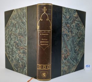 VINGTRINIER (Emmanuel). Vieilles Pierres Lyonnaises. Illustré de 5 eaux-fortes et de 350 dessins dont 25 hors texte par Joannès Drevet. Lyon, Librairie Pierre Masson, 1911. Un volume in-4, (22.5 x 32.5 cm), 323 pages, demi-maroquin vert bouteille, dos à 5 nerfs avec décor doré "à la cathédrale" (Moura). Ce troisième [et dernier] volet de la trilogie de Drevet sur Lyon a été tiré à 1.130 exemplaires. Celui-ci, un des 250 exemplaires de l'édition de luxe (n°42 imprimé pour Auguste Verrier) sur vélin teinté contenant les 5 eaux-fortes en deux états et les 25 grandes compositions hors-texte, en deux teintes. La reliure a été réalisée dans les années 1990 par le relieur lyonnais Moura, en pastiche réussi des reliures de luxe de l'édition [réalisées par Jacquet]. Bel exemplaire.
