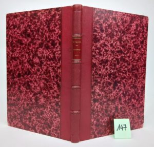 VALOUS (Victor, de). 3 textes rares reliés en un volume : 1/ Les origines des familles consulaires de la Ville de Lyon, depuis l'établissement de la Commune jusqu'en 1790. Lyon, Librairie Ancienne d'Auguste Brun, 1863. (2) ff. + 87 pp. Opuscule devenu très rare, car même s'il a été tiré à 200 ex., de nombreux exemplaires ont été détruits ou brûlés. 2/ Essai d'un Nobiliaire Lyonnais ou rôle des familles nobles existantes et représentées dans l'ancienne circonscription de la Généralité de Lyon. Librairie Ancienne d'Auguste Brun, 1864. 68 pp. 3/ Le domaine ordinaire de Lyonnais au commencement du XVIe siècle ou Notice analytique des comptes domaniaux pendant les années 1523 à 1526. Librairie Ancienne d'Auguste Brun, 1865. 36 pp. Un volume, grand in-8 (15.5 x 24 cm), demi-chagrin rouge d'époque. Provenance : Au dos de la première garde "Vente de Cibeins, novembre 1898". Il s'agit de la "vente après décès des collections d'un amateur lyonnais [Laurent-Gabriel-Léonor de Cholier comte de Cibeins] et ex-libris gravé au dos du premier plat "A R // LUG", qui est celui du collectionneur lyonnais Albert Rosset (1862-1928), soyeux, membre de la SBL, créateur de "La Dépêche de Lyon"].
