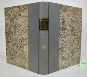 LEMPS (A., de) et FOREST-FLEURY. Vieux Lyon et Lyon Moderne ou recueil de vues de Lyon à toutes les époques, gravées à l'eau-forte par Forest-Fleury. Lyon, Aimé Vingtrinier, 1875-1876. Un volume in-4 [25 x 33 cm], bradel demi-percaline grise, titre doré sur pièce de cuir noir, couvertures conservées. Edition originale parue en 21 livraisons mensuelles et ornée de 105 superbes épreuves gravées (Henry-Fleury-Marie-Esther Forest, Comte de LEMPS, dit FOREST-FLEURY ou FOREST de LEMPS), est un graveur à l'eau-forte français, né le 3 février 1843 à Saint-Marcellin et mort le 1er juillet 1898 à Lyon. Forest-Fleury a aussi utilisé pour signer ses oeuvres le nom de sa mère : de Lemps. Le Bénézit le présente comme Tony Forest-Fleury ou Forest de Lemps Fleury. Petite déchirure à la coiffe en tête, rousseurs éparses.