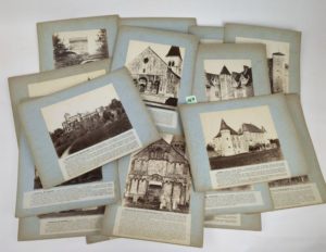 [Ain - régions de Bourg-en-Bresse et Bagé] [ROUGET (Aymard)]. 16 tirages albuminés vers 1880/1890 montés sur carton avec légende collée, extraits de l'ouvrage Monuments du Forez de la Bourgogne du Velay et du Bugey. Env. 16 x 19 cm (tirage). Saint André de Bagé. - Château de Montépin. Canton de Bagé - Château de Laumusse. Commune de Crottet - Château de Varax. Commune de Saint-Paul - Église de de Saint-Paul de Varax - Château de Montelleir. Canton de Meximieux - Château de Genost. Commune de Certines - Château de Rivoire. Commune de Montagnat - Château de Loriol. Commune de Confrançon - Église de Brou - Jubé de l'Église de Brou - Coligny.