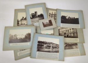 [Ain - Rive de la Saône] [ROUGET (Aymard)]. 10 tirages albuminés vers 1880/1890 montés sur carton avec légende collée, extraits de l'ouvrage Monuments du Forez de la Bourgogne du Velay et du Bugey. Env. 16 x 19 cm (tirage). Château de Béost - Vieille porte à Châtillon sur Chalaronne - Romans. Canton de Châtillon sur Chalaronne - Chavagneux. Canton de Thoissey - Sandrans. Canton de Châtillon sur Chalaronne - Château de la Bâtie. Commune de Montceaux - Château de Tavernost. Commune de Cesseins - Trévoux - Château de Parcieux. Canton de Trévoux - Château de Beauregard. Canton de Trévoux. Joint une photographie du château de Tavernost (7.7 x 10.5 cm).