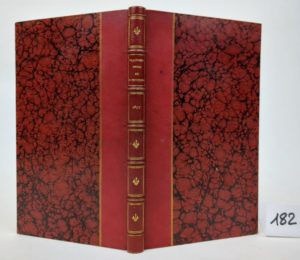 GARON (Louis) & MONFALCON (Jean-Baptiste). Recueil des plaisants devis récités par les supposts du Seigneur de la Coquille. Lyon, N. Scheuring et Cie, 1857. in-18 [12 x 19.7 cm], 187 pages +[1] table, demi-chagrin rouge, dos à 5 nerfs, fleurons dorés, tête dorée. Edition perrine avec fac-similé des titres des 8 livres, impression en augustal romain (préface), italique (texte), lettrines, bandeaux, fleurons. Tirage à 125 exemplaires sur vergé teinté, 2 sur vélin et 4 dans le format in-8 très allongé. C'est la première et seule édition complète qui contienne les plaisants devis de 1580, 1581, 1584, 1589, 1591, 1594, 1601 et surtout le colloque (dialogue poétique entre les trois supposts de l'imprimerie lyonnaise). Ces 8 éditions originales, dues en grande partie à Louis Garon, sont réimprimées avec élégance. Leurs ornements iconographiques (dessins, fleurons, emblèmes, marques typographiques) sont reproduits ici avec fidélité. A noter également des renseignements curieux sur ces plaquettes, contenus dans la notice bibliographique mise en tête du recueil et dus à J.-B. Monfalcon. Recueil imprimé aux frais du libraire Scheuring. Bel exemplaire sur vergé teinté, très bien relié.